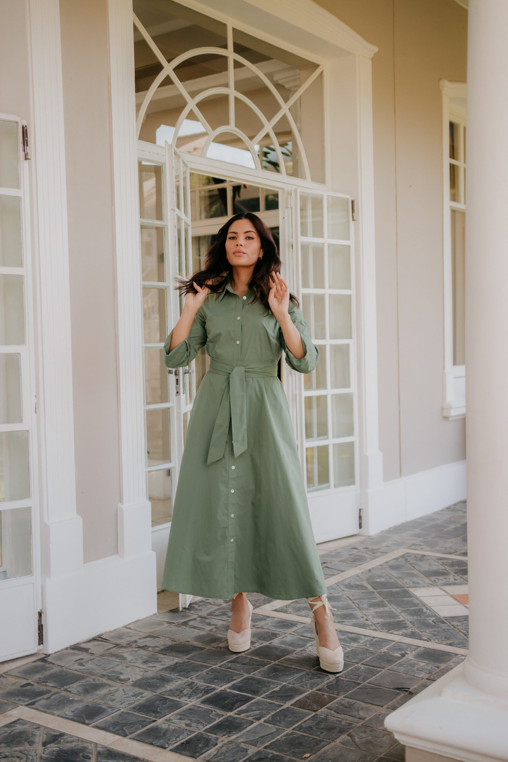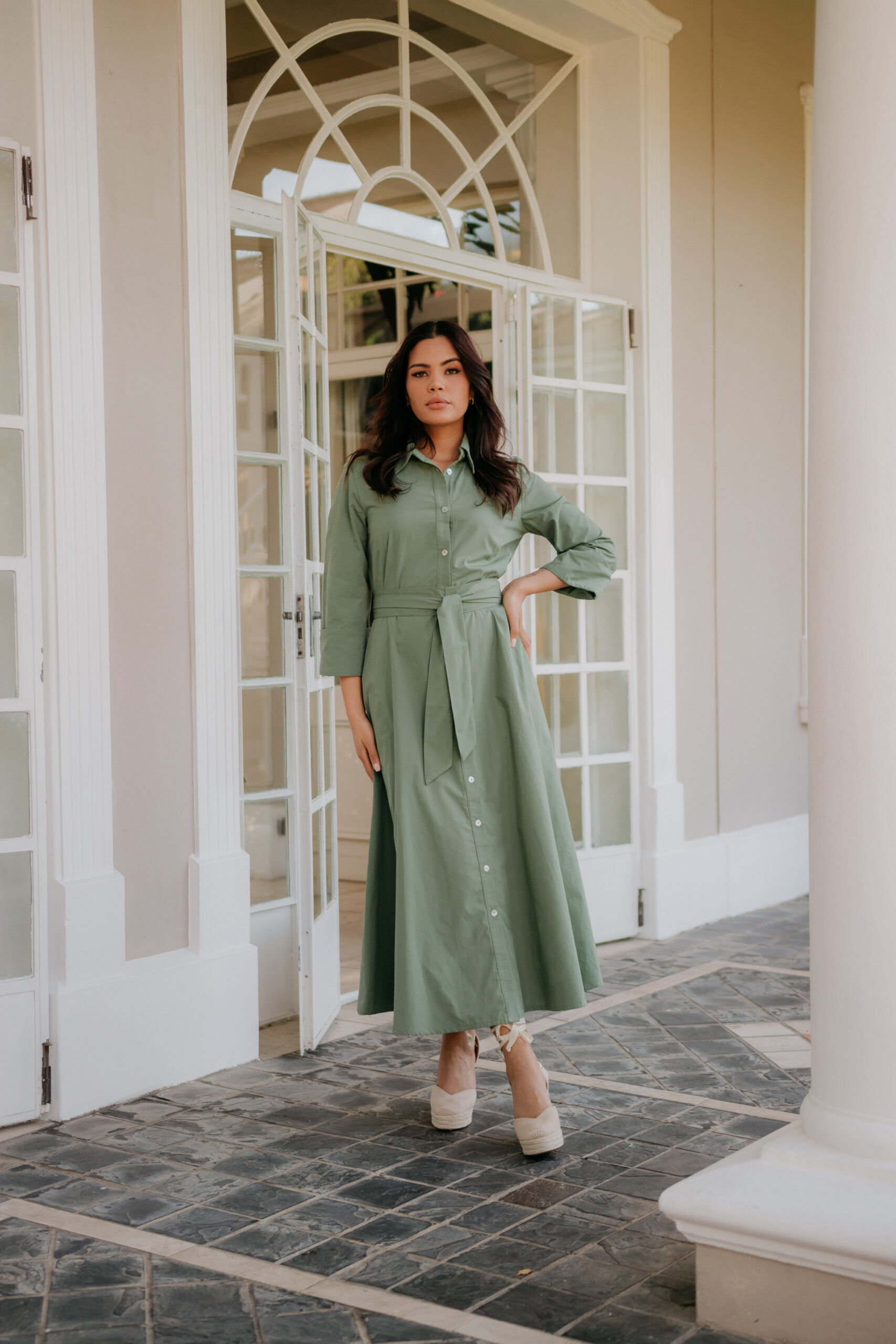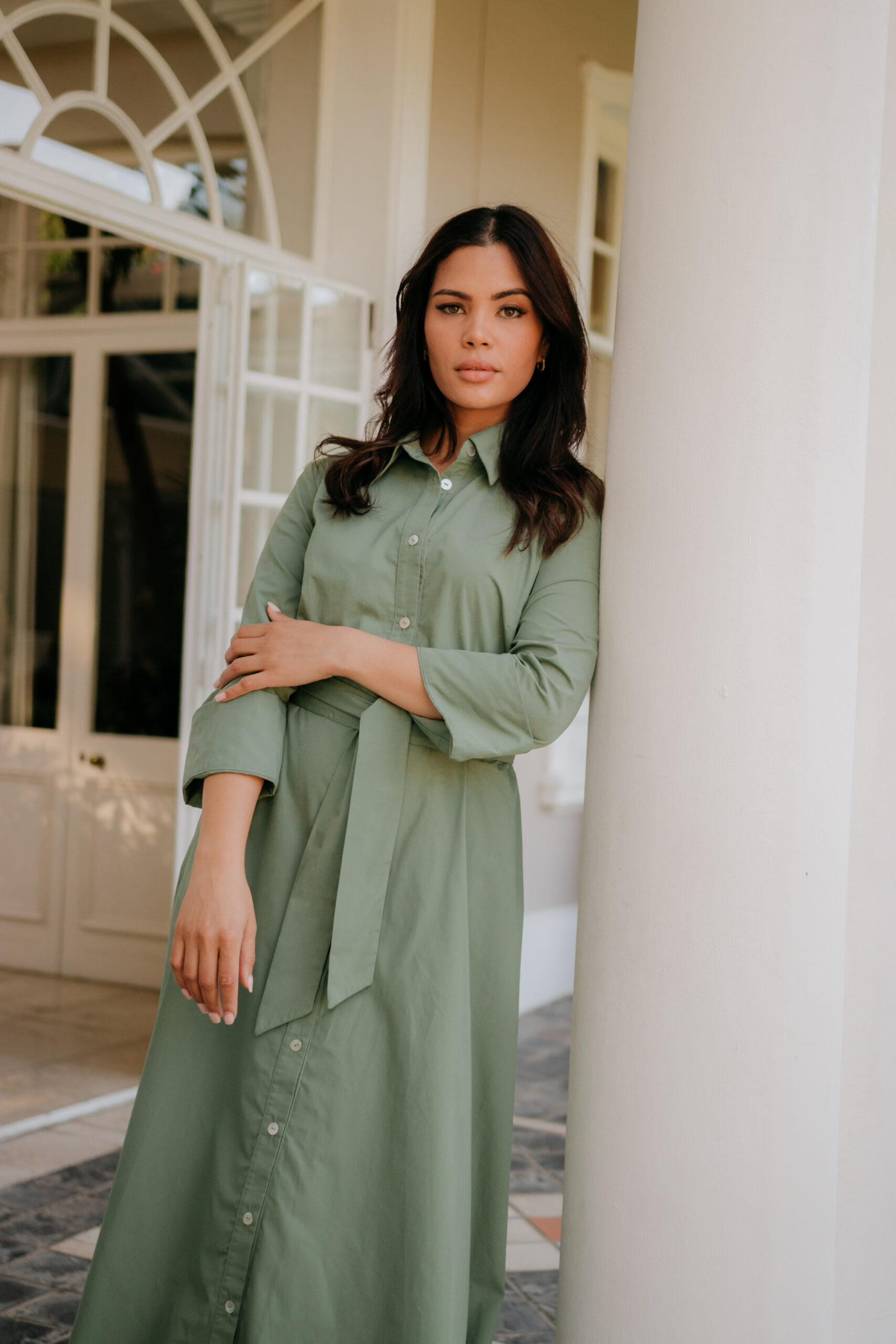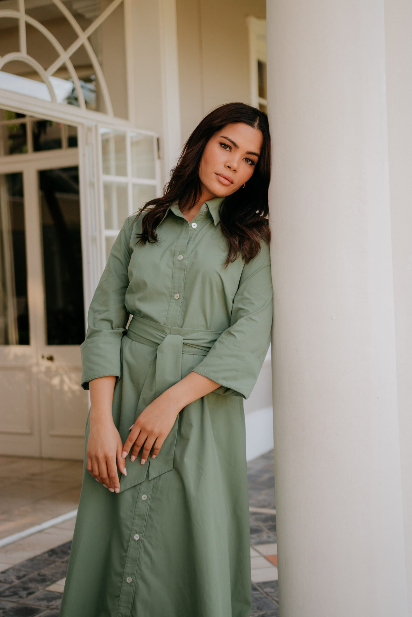This poly cotton shirt waister is flattering for all body types. Side pockets for a relaxed look and feel. A belt is included which is optional when styling.