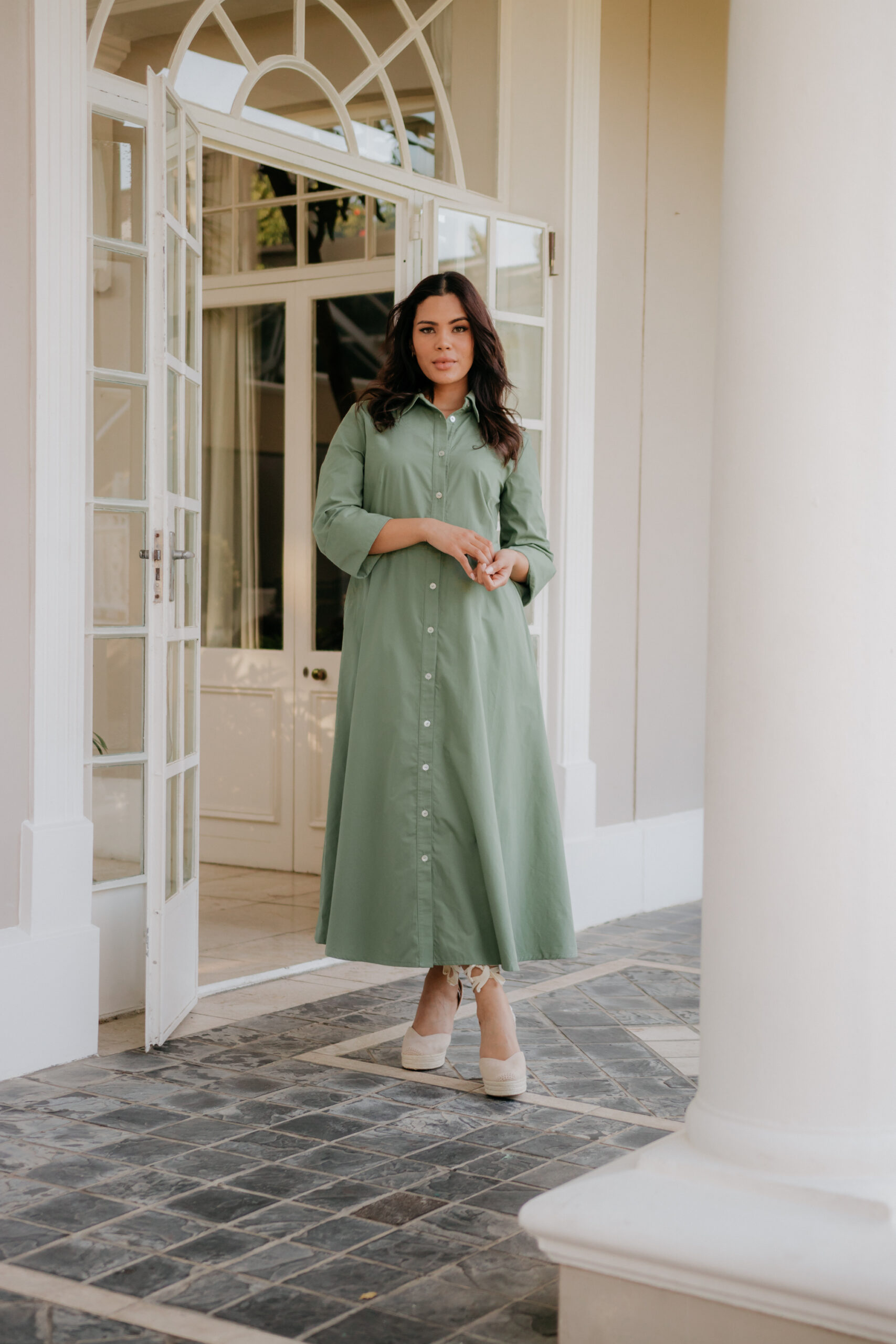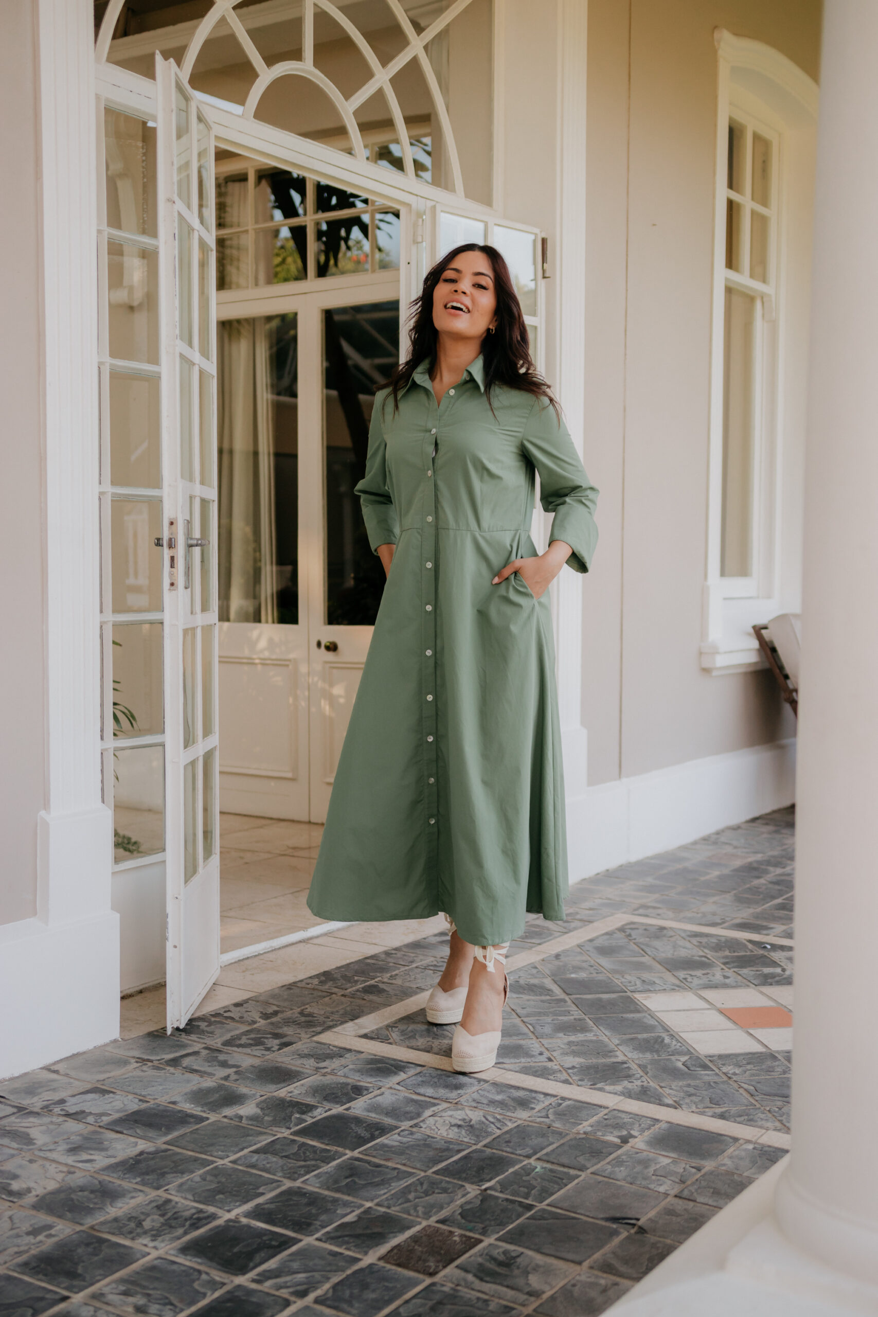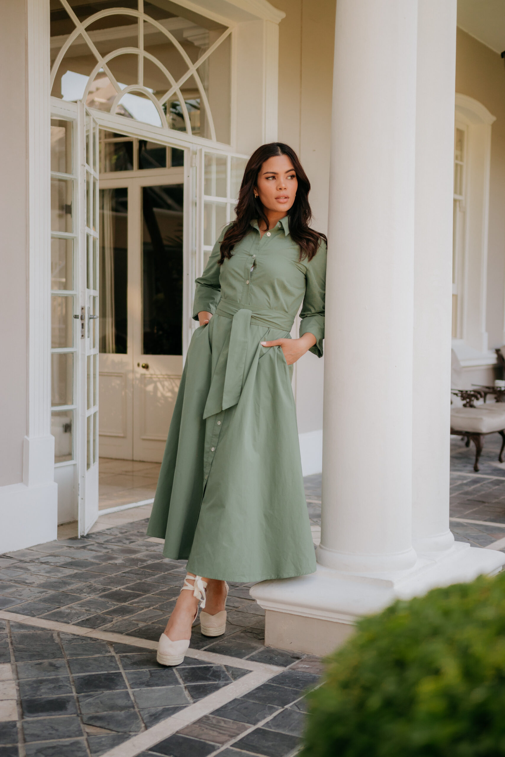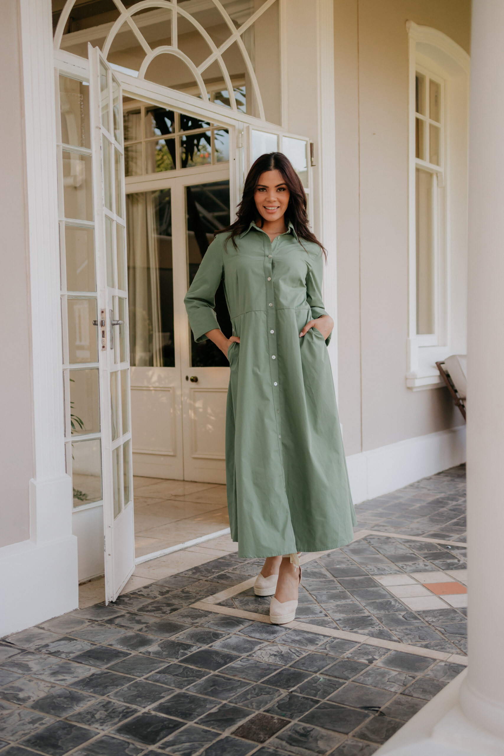 This poly cotton shirt waister is flattering for all body types. Side pockets for a relaxed look and feel. A belt is included which is optional when styling.