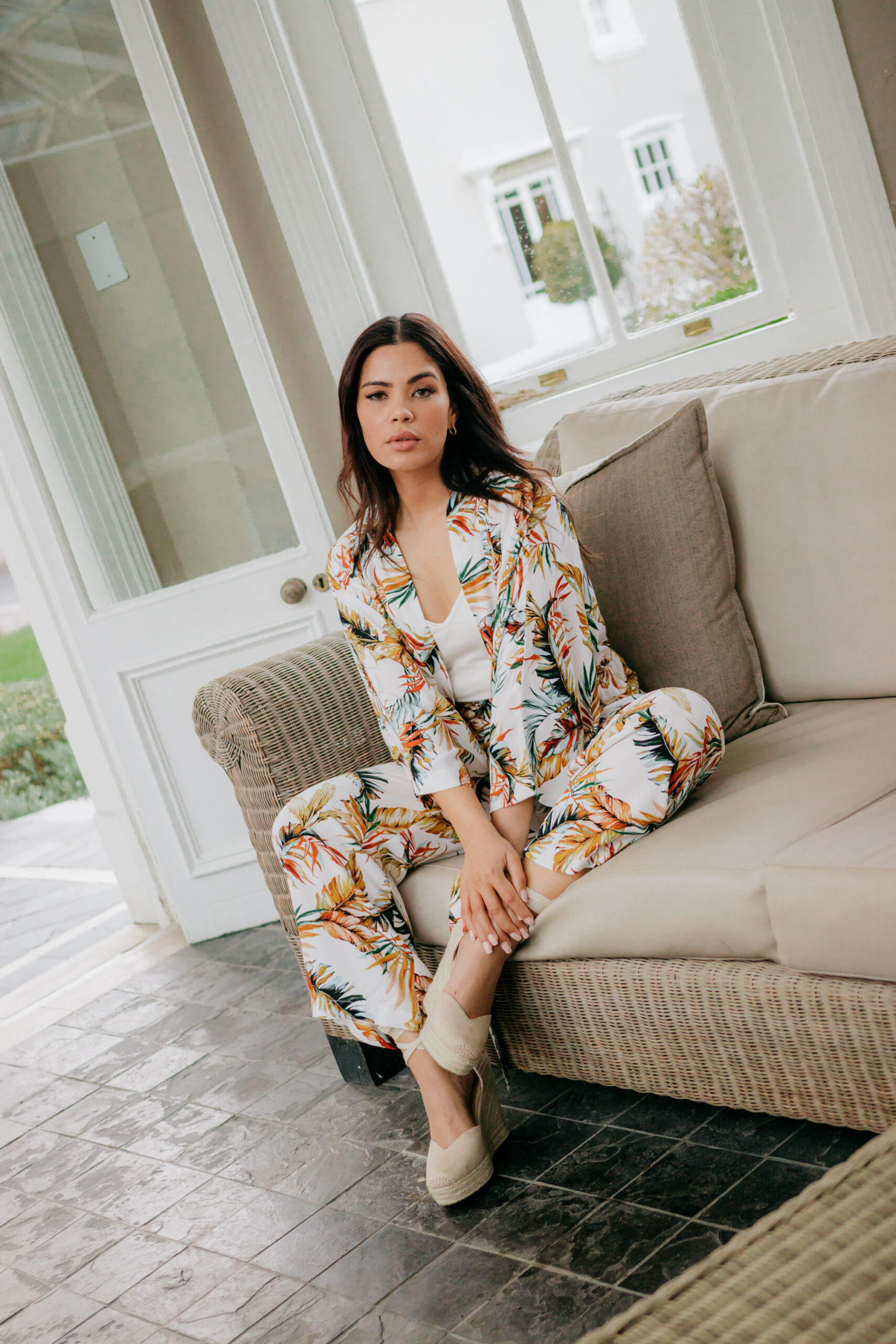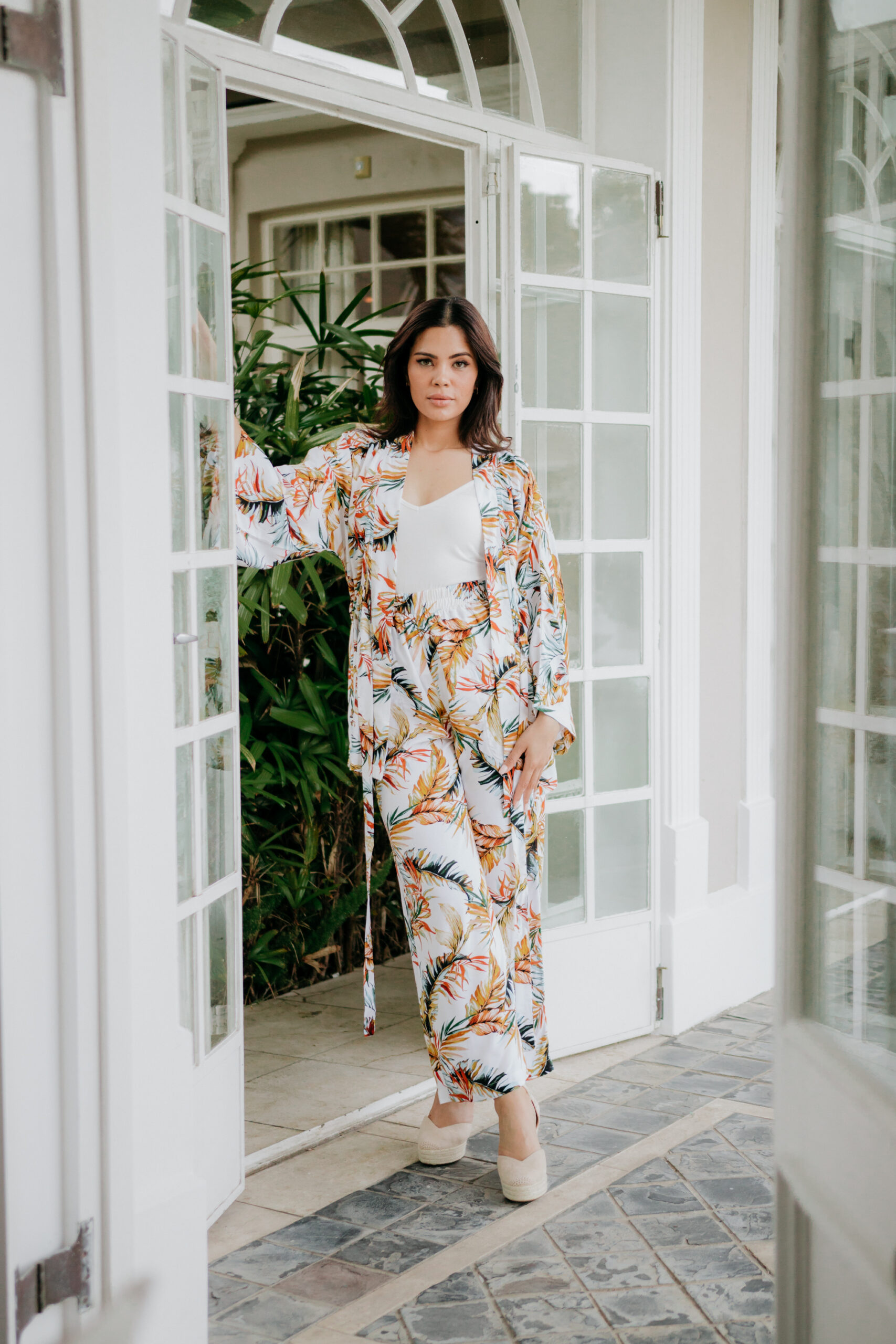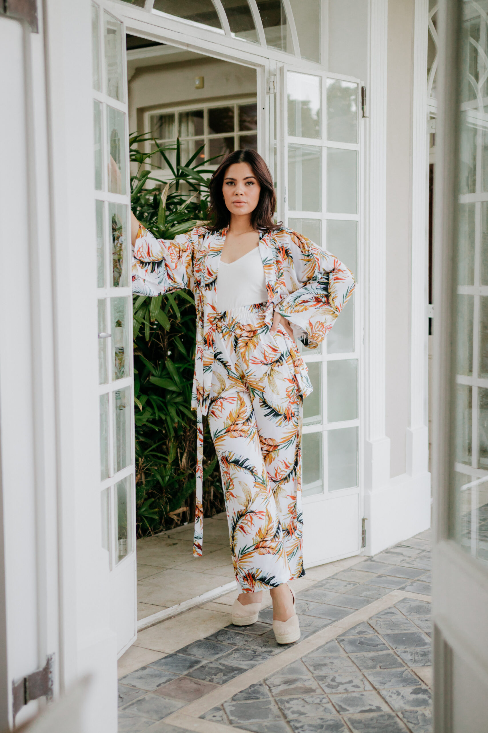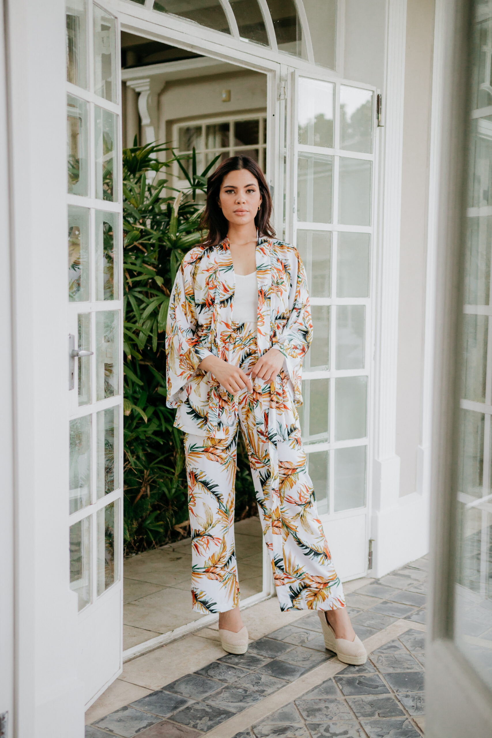 This two piece Viscose kimono jacket and wide legged pants is perfect for any occasion