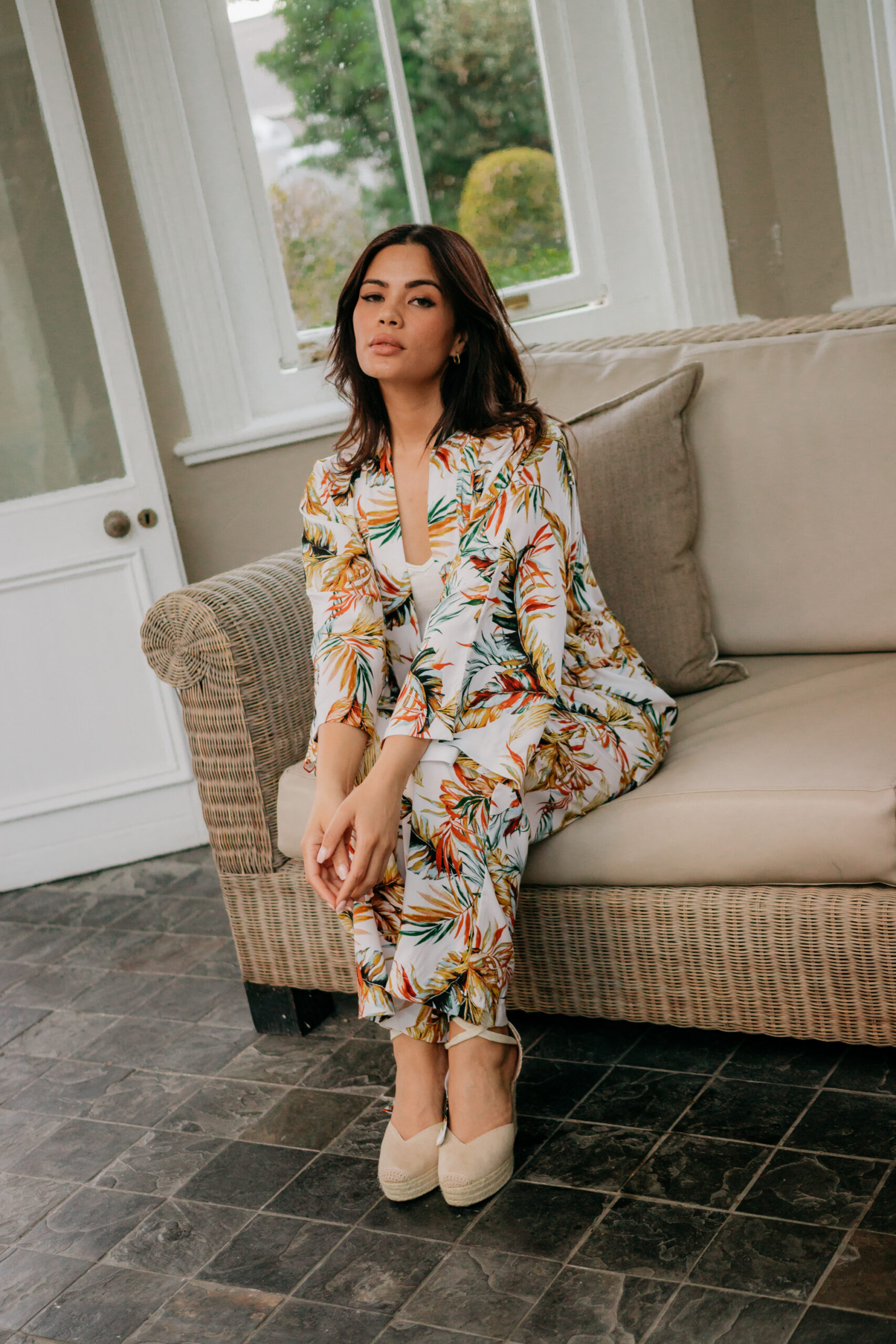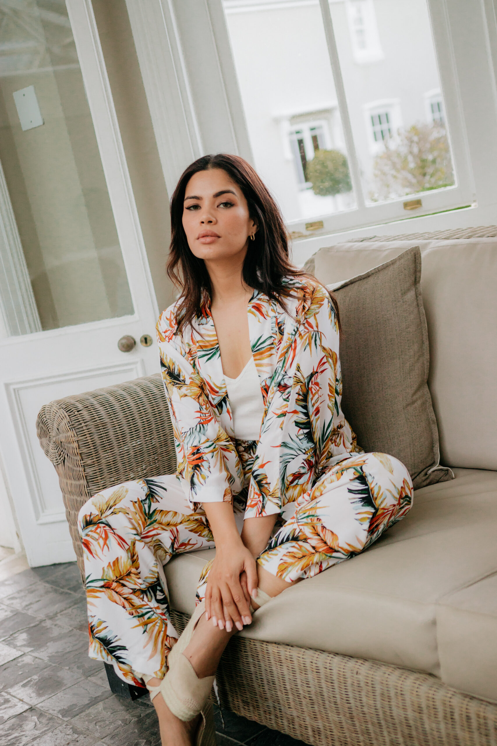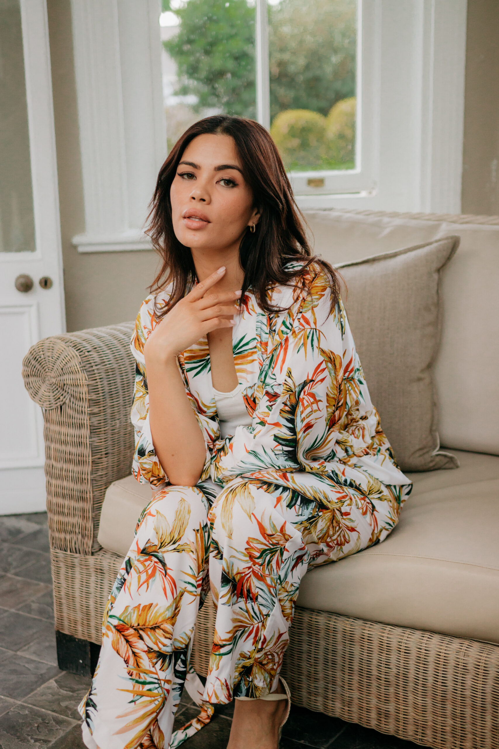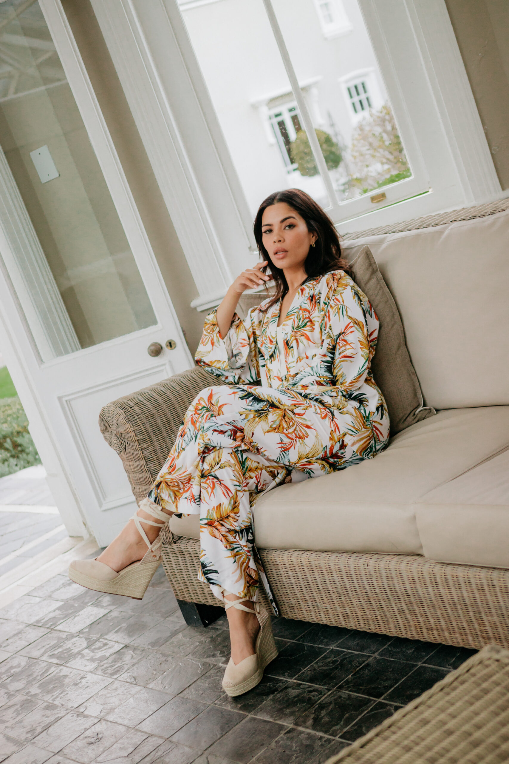 This two piece Viscose kimono jacket and wide legged pants is perfect for any occasion